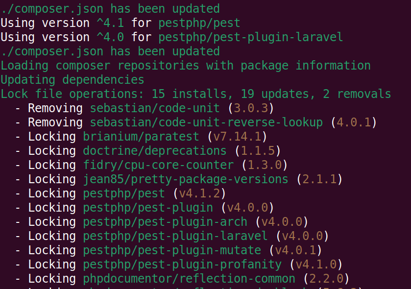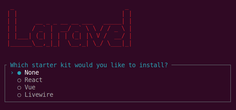 Ya estando dentro de la carpeta laravel, ejecutamos el comando de laravel new con el nombre del proyecto, en este caso crud y esperamos a que nos empiecen a aparecer los mensajes de pre configuración.