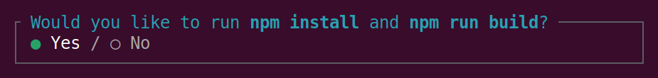 Nos consulta si queremos agregar npm a nuestro proyecto, le decimos que Yes, porque trabajaremos con muchas librerías que trae por defecto en una carpeta llamada node_modules.